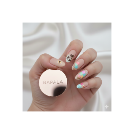 Por eso, estas uñas press-on veraniegas veganas traen playa a tus manos. Además, son hipoalergénicas para pieles sensibles. Entonces, perfectas para vacaciones, piscina o fotos UGC.